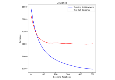 >>> from sklearn.ensemble import HistGradientBoostingRegressor >>> from sklearn.datasets import load_diabetes >>> X, y = load_diabetes(return_X_y=True) >>> est = HistGradientBoostingRegressor().fit(X, y) >>> est.score(X, y) 0.92...