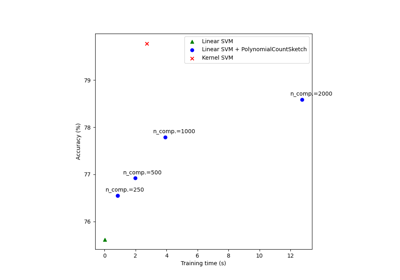 LinearSVC或SGDClassifier,可能在应用Nystroem转换器或其他 核近似 之后。多类别支持按照一对一方案处理。